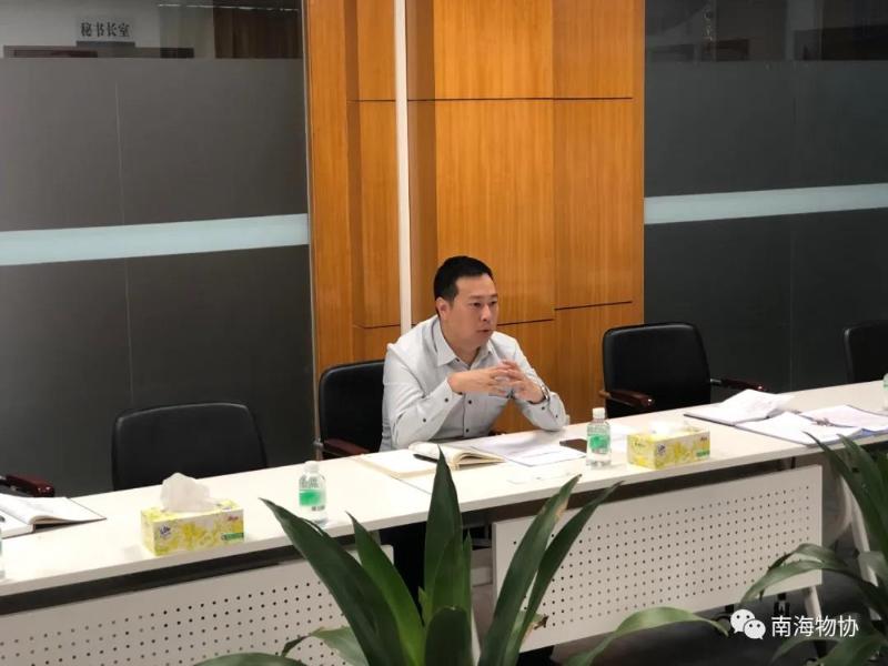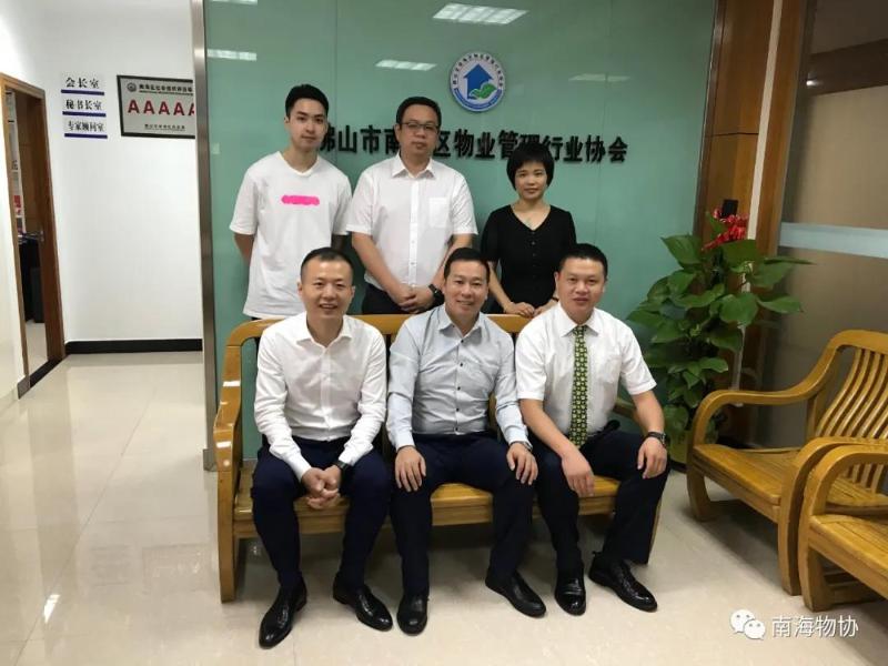 2020年9月23日上午,万科物业珠江西岸区域公司总经理程家森,南海阵地经营体首席合伙人张关雄,万科物业幸福社区发展中心城市运营经理邓旭熠一行三人,到南海物协进行工作交流及调研,南海物协秘书长李承玺等人热情接待了万科物业一行三人。